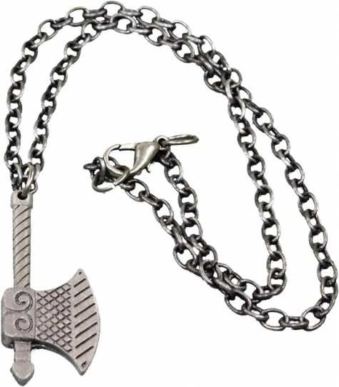 Dieser aus Zinn gefertigten Anhänger kommt mit einer ca. 60cm langen Kette. Die verzierte Axt ist ein echter Blickfang und rundet nahezu jedes Outfit optimal ab. Material Anhänger: Zinn Größe Anhänger: ca. 5cm x 2cm Länge Kette: ca. 60cm