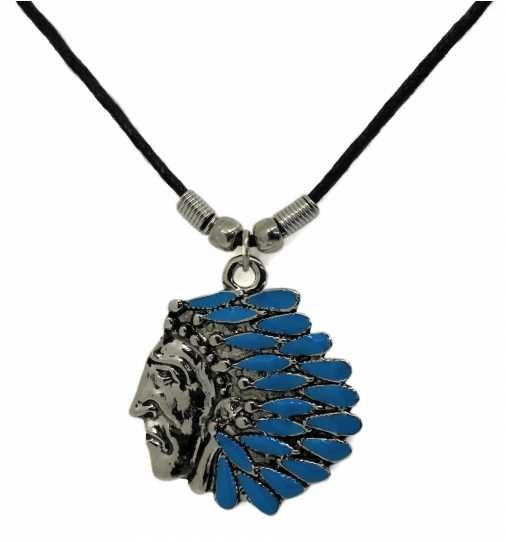 Dieser aus leichtem Gusseisen gefertigte Indianer-Häupltingskopf ist mit Kopfschmuck aus blauen Kunstoffsteinchen und kommt mit einer ca. 60cm langen Baumwollkordel inklusive Augwirbelhakenverschluss. Der wunderschön gearbeitet Anhänger erhält…