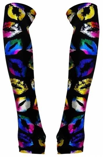 Armstulpen mit mehrfarbigen Lippenmuster. Farbe: mehrfarbig Material: 80% Baumwolle, 10% Nylon, 10% Elasthan Größe: Einheitsgröße (dehnbar) Waschen 40°C, Nicht chemisch reinigen, bleichen nicht erlaubt, nicht im Trommeltrockner trocknen, nicht bügeln.