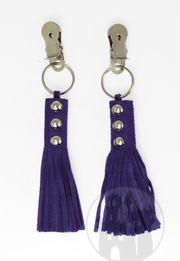 Brustklammern mit kleiner lila Peitsche, im Bondage Shop finden Sie nicht nur Brustklammern…