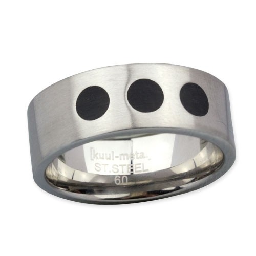Edelstahlring mit 3 schwarzen Punkten, mattiert und beschichtet. Material: Edelstahl Farbe: silber-schwarz Größe: 60, 62, 64, 66