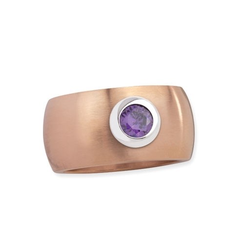 Edelstahlring ‚Blink‘ roségold matt mit violettem Zirkonia