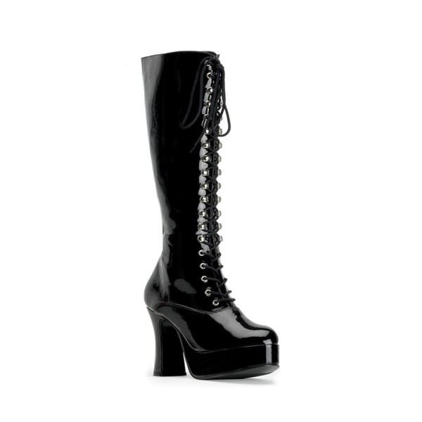 Diese Kniehohen Stiefel haben wie alle von uns angebotenen High Heels gepolsterte Fußbetten um dauerhaft bequmen Tragekomfort zu ermöglichen. Die Absatzhöhe beträgt ca. 10,2 cm. Obermaterial und Farbe: Lack (PVC): weiss, schwarz Kunstleder: schwarz Fussbett: gepolstert Sohle: Kunststoff Größe: 36 – 44