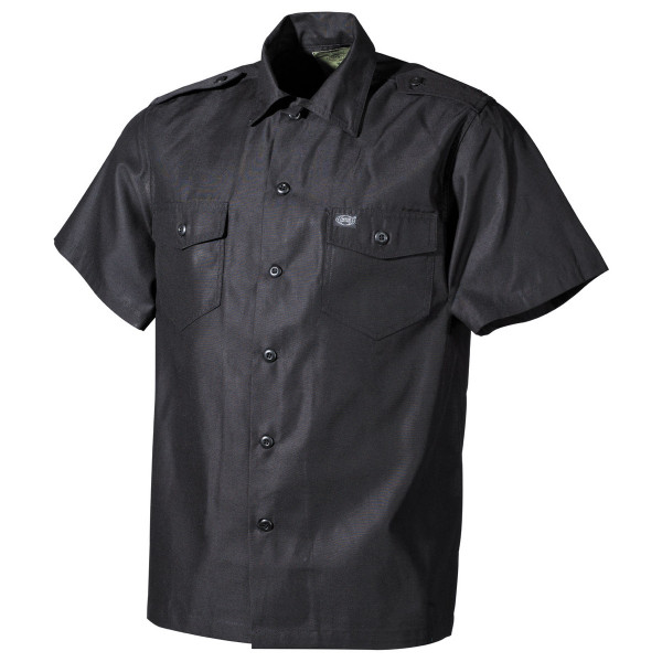 Bequemes Freizeithemd mit Taschen und zwei Schulterklappen. Weitere Details des Produktes: 2 Schulterklappen 2 Brusttaschen Farbe: Schwarz Größen: S, M, L, XL oder XXL Material: 65% Polyester, 35% Baumwolle Maßtabelle: