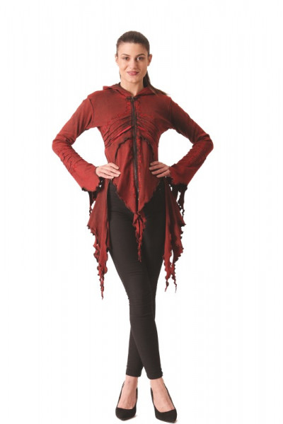 Die lange Kapuze sowie die ausgefallenen welligen Fransen verleihen dieser Jacke einen mystischen Look. Sie ist mit feinen Ornamenten und Ziernähten bestickt, die einen doppellagigen Look gestalten und für tolle Kontraste sorgen. Sie ist aus 100% Baumwolle und lässt sich so angenehm tragen….
