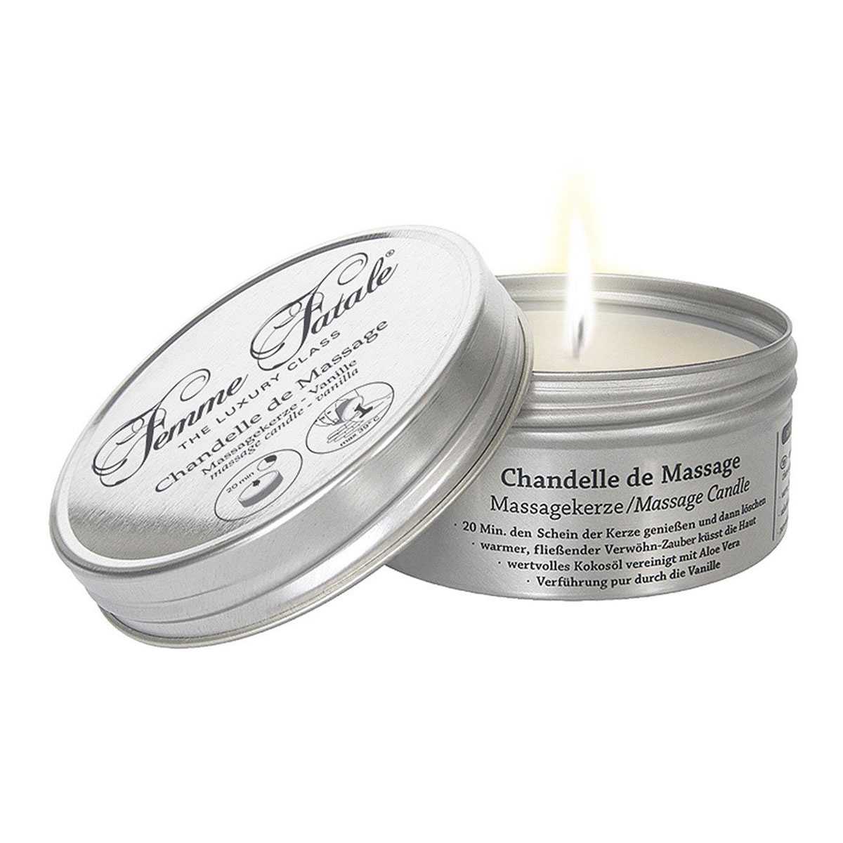 Die Femme Fatale Massagekerze von Joydivision verzaubert Dich mit sinnlichem Vanilleduft. Mit pflegendem Jojobaöl, Kokosnussöl und vitalisierendem Vitamin B sowie Aloe Vera. Jetzt kaufen.