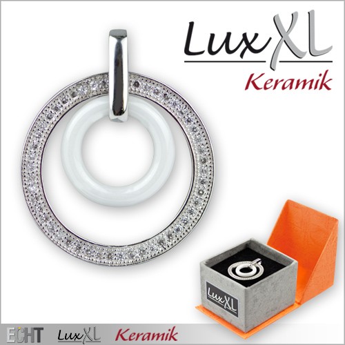 Keramikanhänger mehrlagig weiß mit Silber und Zirkonia. Durchmesser: ca. 2,2 cm Farbe: silber, roségold Material: Keramik, Silber, Zirkonia