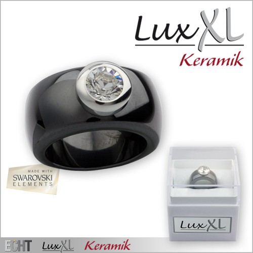 Keramikring schwarz poliert mit Swarovski-Kristall. Die Fassung des Kristall kann abgeschraubt und ausgetauscht werden. Größe: 54, 56, 60, 62, 64 Farbe: schwarz Material: Keramik, Swarovski-Kristall Breite: ca. 12 mm