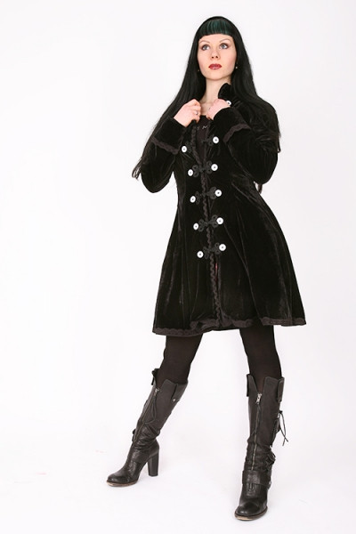 Mantel, Jacke im Gothic Style Tolle Jacke mit sehr eleganter Klopfleiste mit schönen Knöpfen und flauschigem Stoff. In Größe S, M,L und XL verfügbar. Farbe: schwarz Material: 100% Polyester Größenumrechnung: Größe S: 36-38 Größe M:40-42 Größe L:44-46 Größe XL:46-48