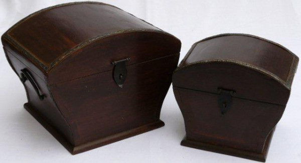 Schöne Holztruhe mit Beschlägen aus Teakholz. In zwei verschiedenen Varianten erhältlich. Version 1: 20x19x19cm (klein) Version 2: 31x23x24cm (groß)
