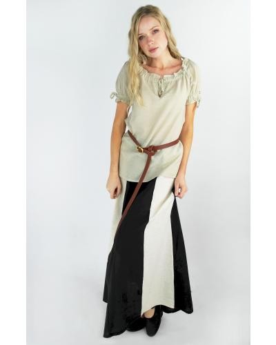 Diese Kurzarmbluse mit schlichtem, klassischen Schnitt darf nicht in Ihrem Mittelalter-Schrank fehlen! Die Ärmel schließen mit einem Bündchen ab. Sowohl am Ärmelende, als auch am Dekolleté ist die Mittelalter-Bluse mit einem Tunnelzug ausgestattet mit dem man beliebig die Weite anpassen…