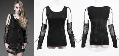 Das Top Stalker“ ist ein Oberteil das sowohl für einfache Alltags Gothic Outfits als auch als Basic Shirt für ausgefallene Steampunk Outfits geeignet ist. Ein interessantes Highlight sind die abnehmbaren Ärmel, die auch unabhängig als Armstulpfen getragen werden können. Das Top ist in…“