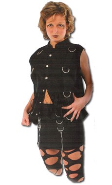 Weste mit D-Ringen und Knöpfen. Farbe: schwarz Größe: S/M, L/LX Material: 100% Baumwolle Maße XS S M L XL XXL XXXL Damen 34 36/38 38/40 40/42 42/44 44/46 48